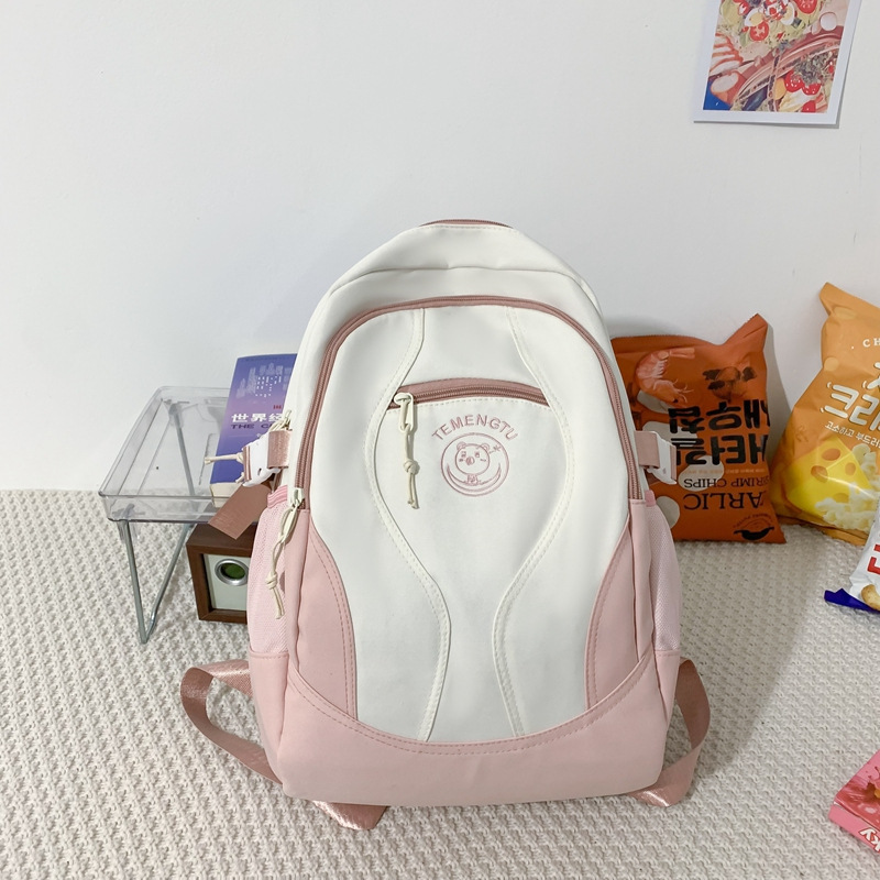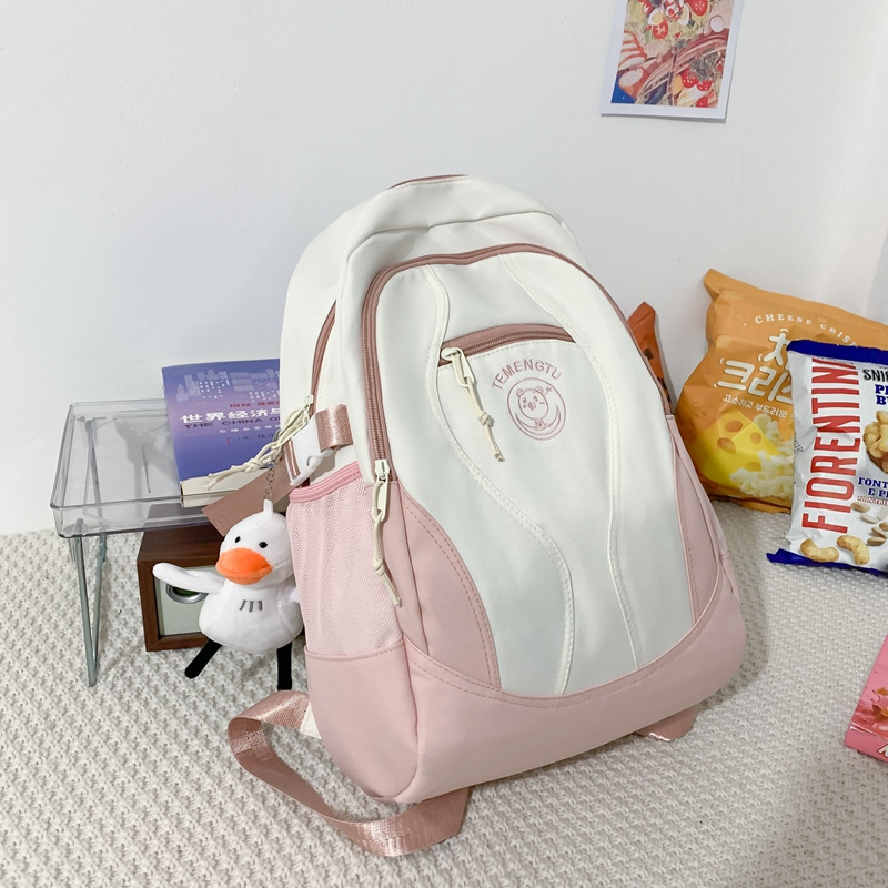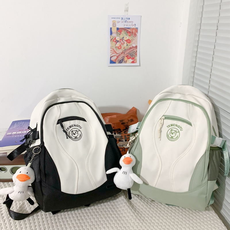 书包女日系ins高颜值森系百搭撞色双肩包初中学生高中生防水背包