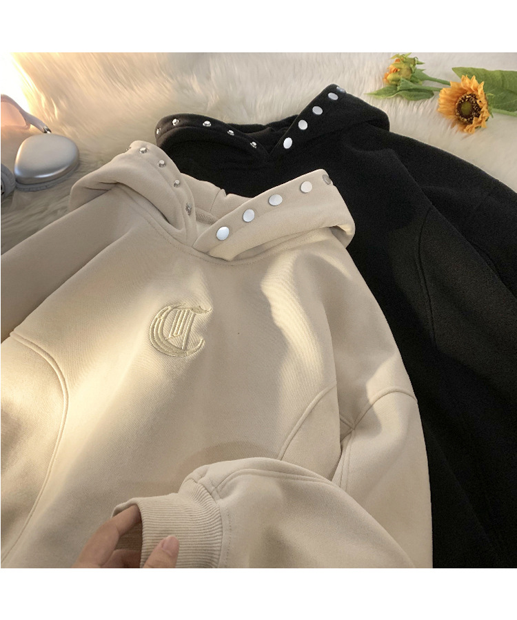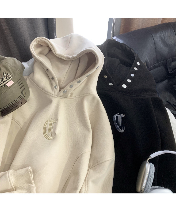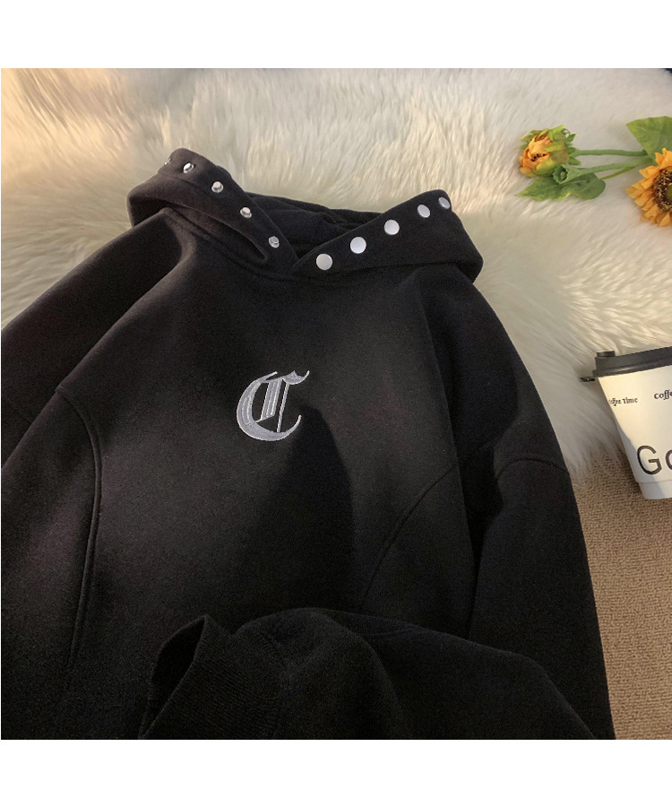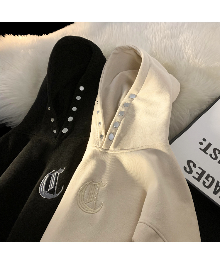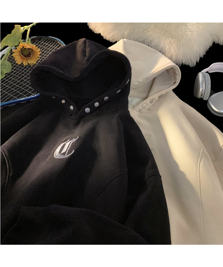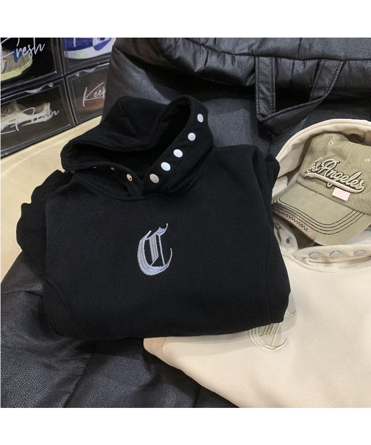 ATN男装|新品字母刺绣加绒加厚男生连帽卫衣潮牌帽衫学院