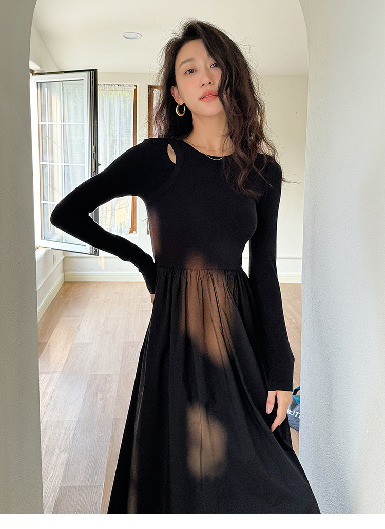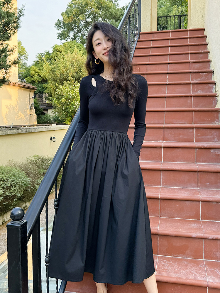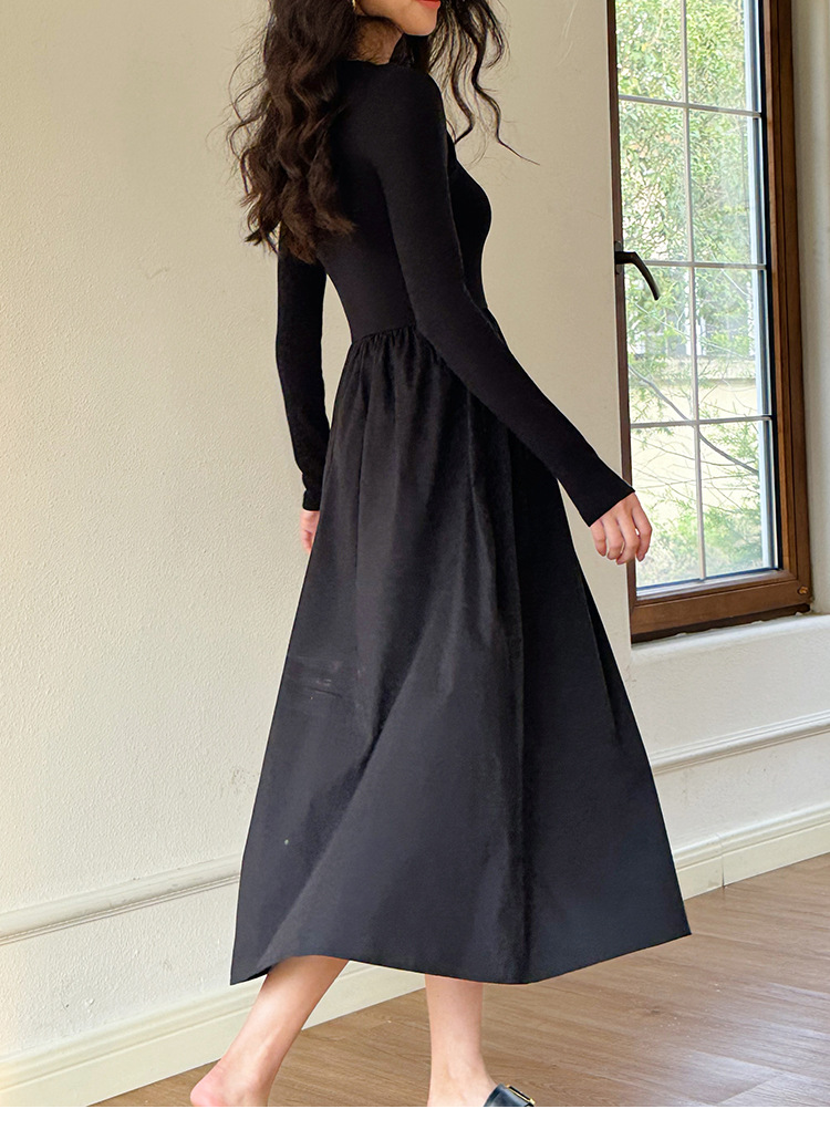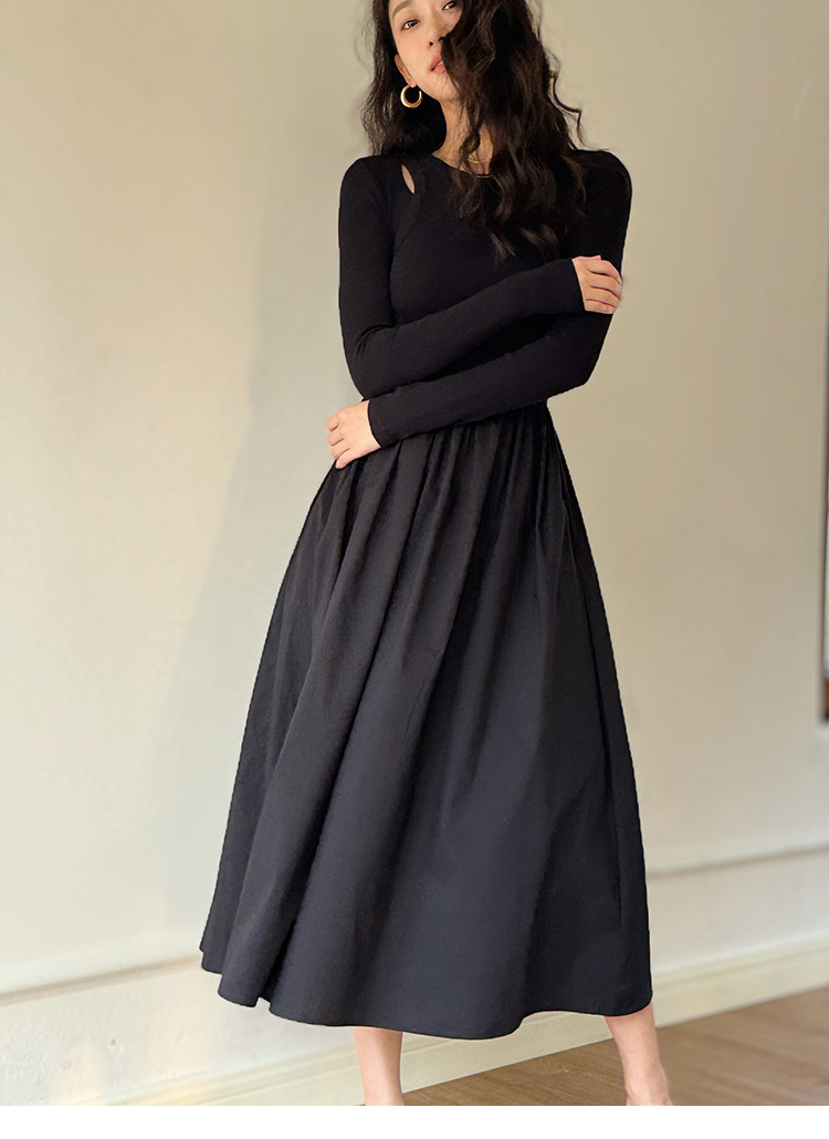 女装新款显瘦打底连衣裙中长款韩国女装套头小黑裙修身针织裙