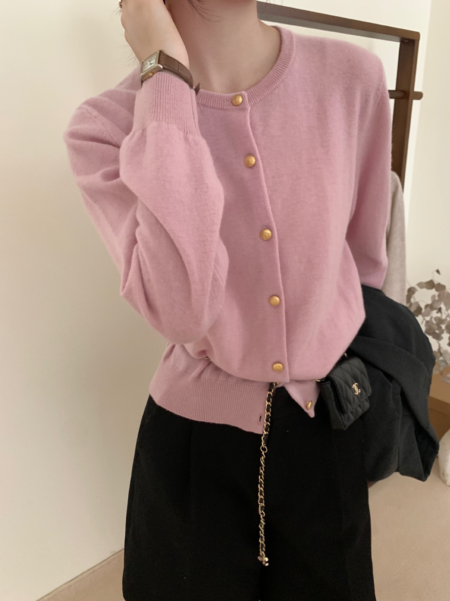 100%羊毛韩系圆领纯色小金扣长袖针织衫时尚百搭女装egg毛衣