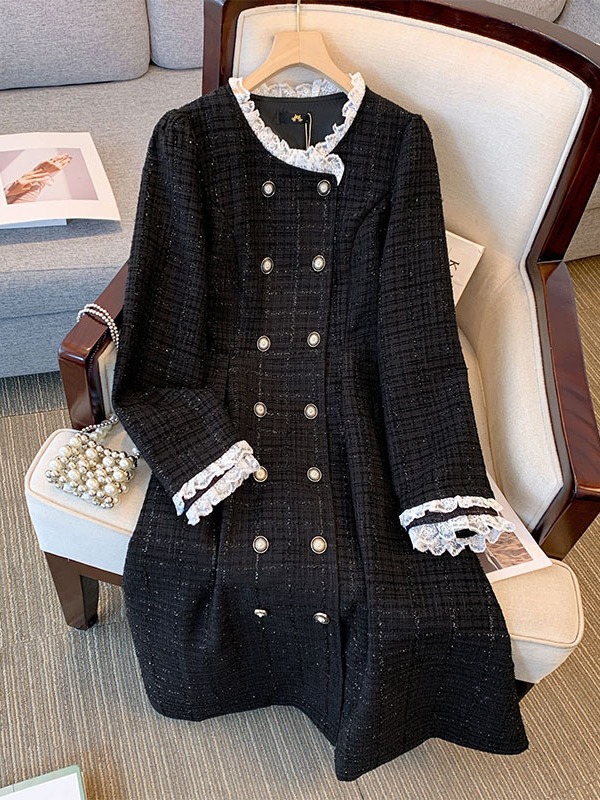 女装小香风长袖连衣裙胖mm中长裙气质
