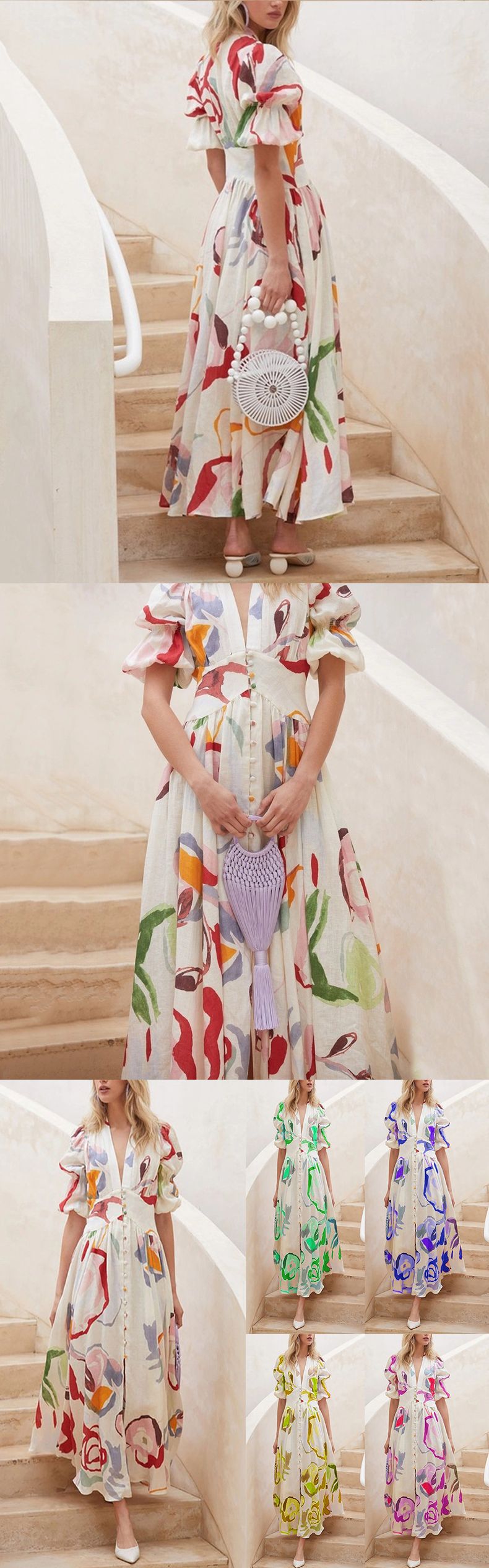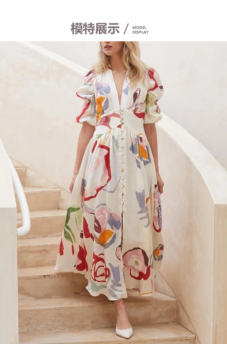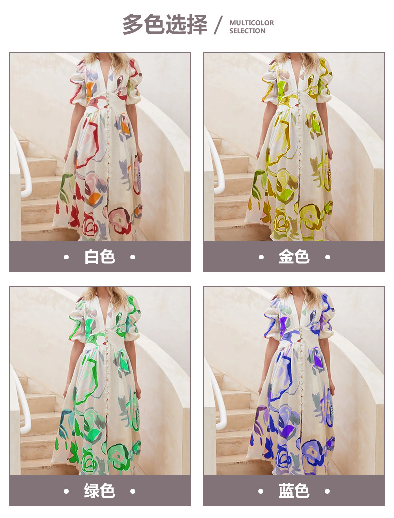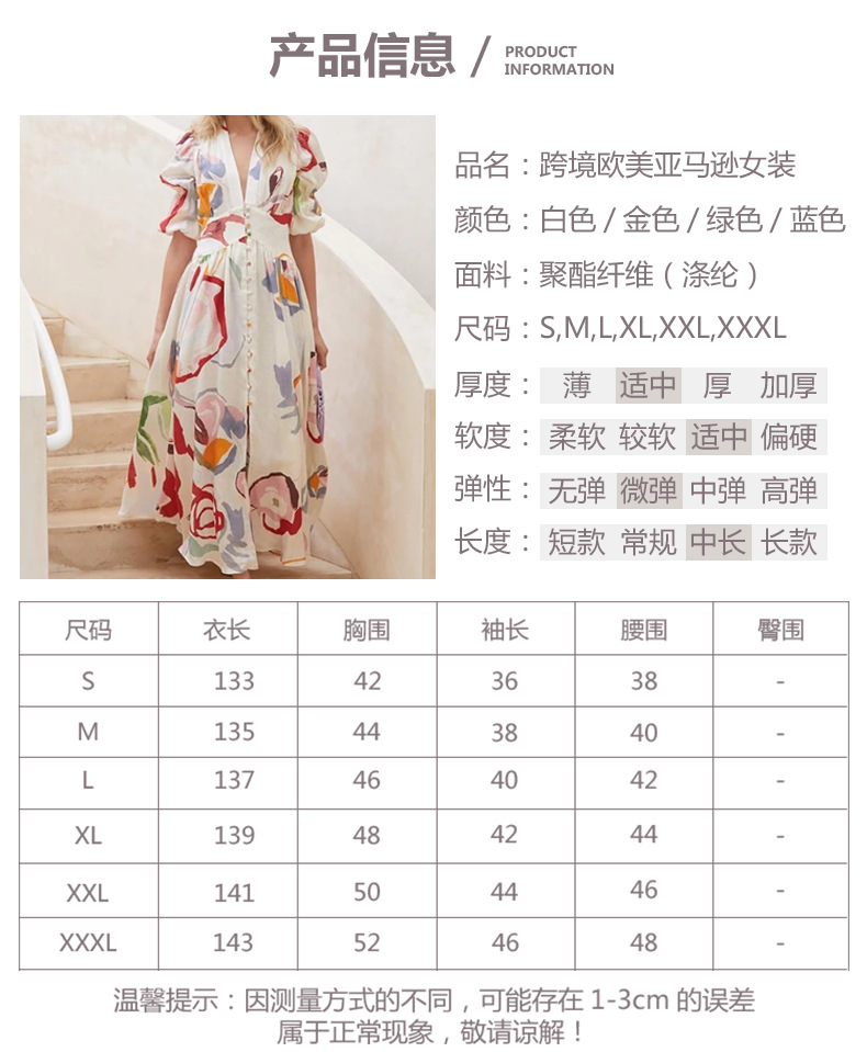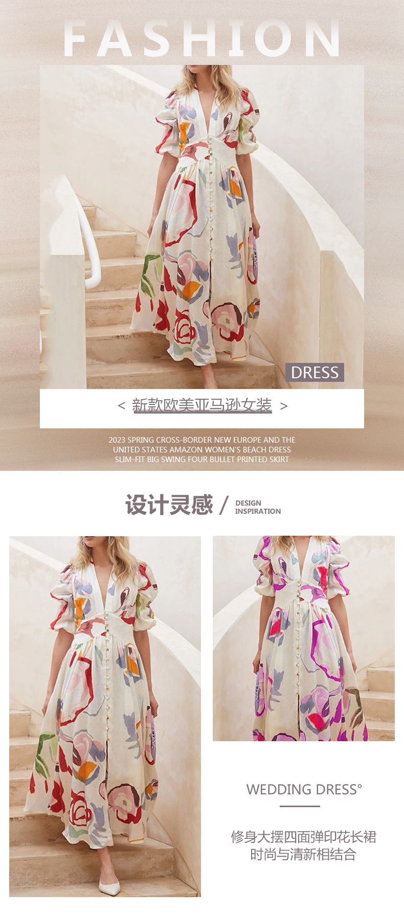 新款欧美亚马逊女装沙滩连衣裙修身大摆四面弹印花长裙